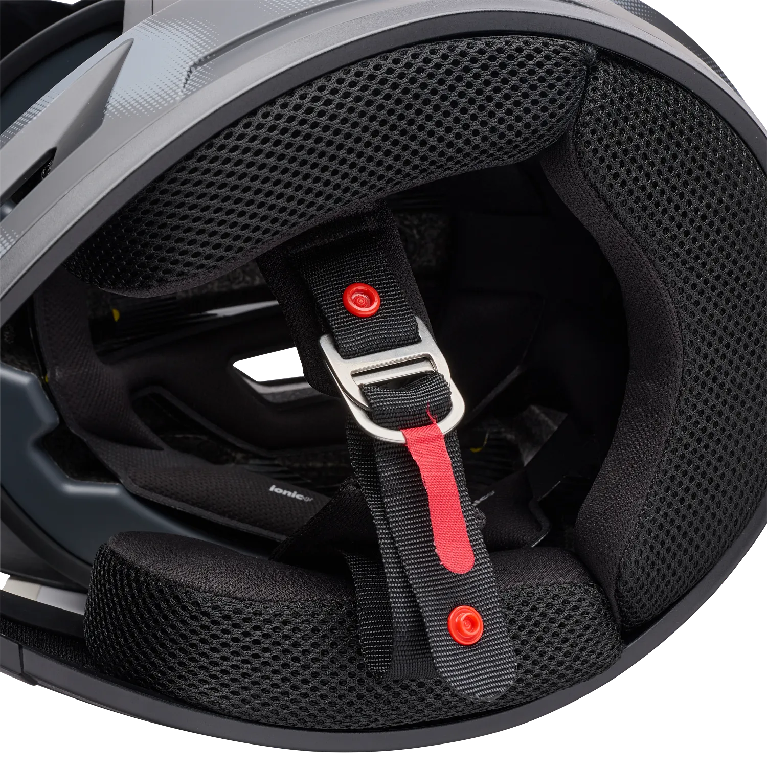 - TECHNOLOGIA FLYING BRIDGE VISOR — Ta konstrukcja daszka zapewnia większą elastyczność i poprawia przepływ powietrza przez kask. Dzięki rezygnacji z tradycyjnego słupka centralnego i śruby jesteśmy w stanie zwiększyć ilość materiału pochłaniającego energię w strefie silnego uderzenia.