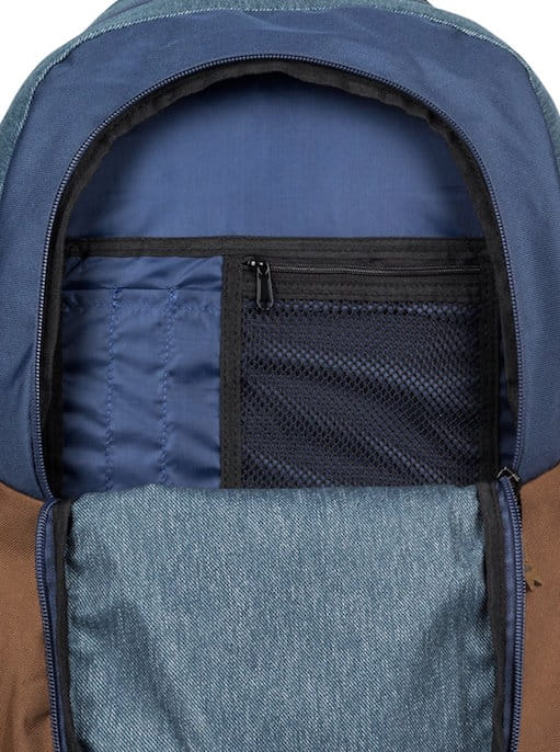 Plecak QUIKSILVER Schoolie jak sama jego nazwa wskazuje, to wspaniały plecak szkolny, ale nie tylko, bo może być również plecakiem miejskim. Idealnie sprawdzi się na wycieczkę, albo piknik, szczególnie, że w jego główną dużą komorę można włożyć koc czy cieplejszą bluzę. Dwie boczne kieszenie z siatki to możliwość zabrania ze sobą butelki lub bidonu, a małe kieszonki na suwaki pozwolą na schowanie najpotrzebniejszych małych przedmiotów. Wyściełane ergonomiczne szelki oraz specjalnie wyprofilowane plecy to duży komfort noszenia.